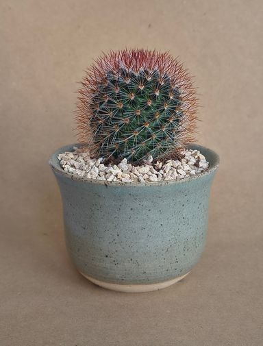 Maceta con esmalte alta temperatura Cactus Rebutia Heliosa Bonsai, Kusamono , mame, cactus Diametro 9 cm x 11 cm alto
