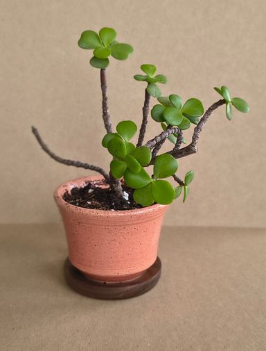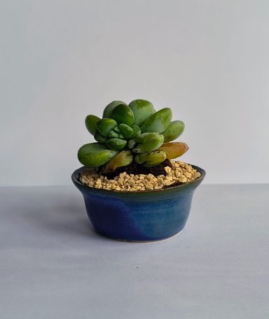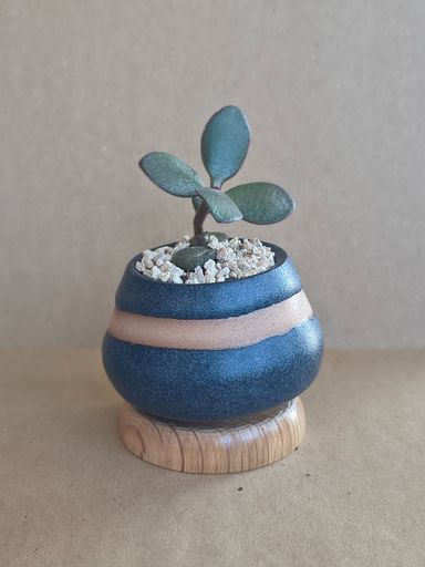 Maceta con esmalte alta temperatura Planta Portulacaria Afra mame. Maceta Diametro 12,5 cm x 5 cm alto